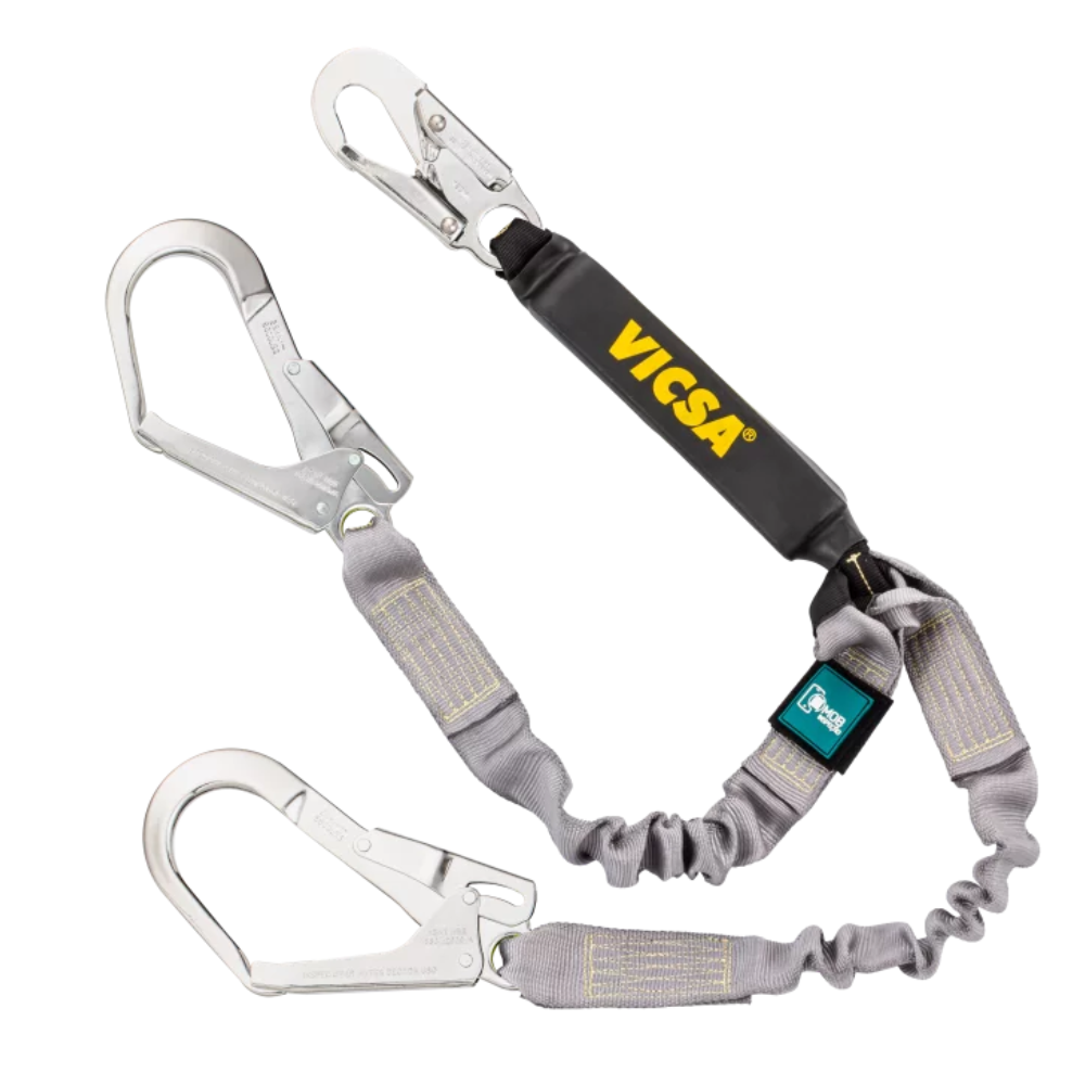 O modelo VIC-23.805 conta com absorvedor de energia integrado, que reduz o impacto em caso de queda, e três conectores de aço — sendo um classe T com abertura de 20 mm e dois classe A com abertura de 55 mm, permitindo mobilidade e segurança superior durante o trabalho.